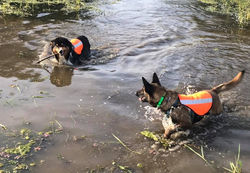 ![]() Jersey qui indique la rampe. | ![]() Jersey adore aller chercher les bâtons dans l'eau. | ![]() Jersey et Nyte |
